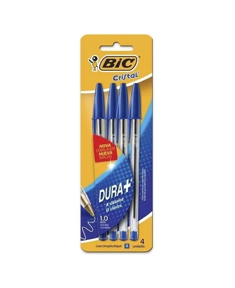 Utilidades>Papelaria>BIC CAN. CRISTAL DURA+ AZUL 4UN